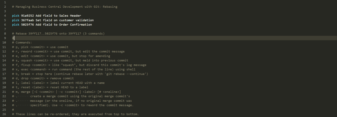 * 381c83d (HEAD -> bug/commission-calc) Fix rounding error in commission calc | * e9d31b4 (feature/sales-report) Action to open sales report from customer | * 78102dd Sales report |/ | * c450814 (feature/sales-price-calc) Prices in non-base UOM | * dd5f6c0 Prices in additional currencies | * 02fa619 Pricing elements per item |/ * 3894d1a (tag: 1.0.0, origin/master, release/1.1.0, master) Correct typo in caption * cd03362 Add missing caption for new field * 94388de Populate new Customer field OnInsert * c49b9c9 Add new field to Customer card